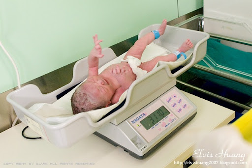 產房中就一直有丸子妹響亮的哭聲和我的D200快門聲 就一直狂按快門..^^