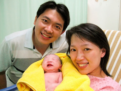 06/23 AM 8:51 認真用力了3次, 丸子妹就跟大家見面了! 老婆哭哭, 寶寶哭哭,爸爸笑笑